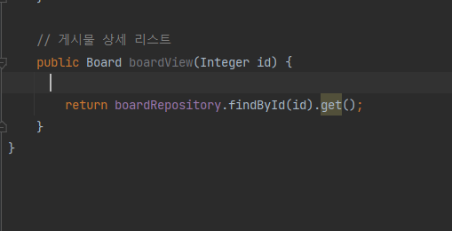 Service로 가서 게시물 상세 리스트에 대한 코드를 구현한다.