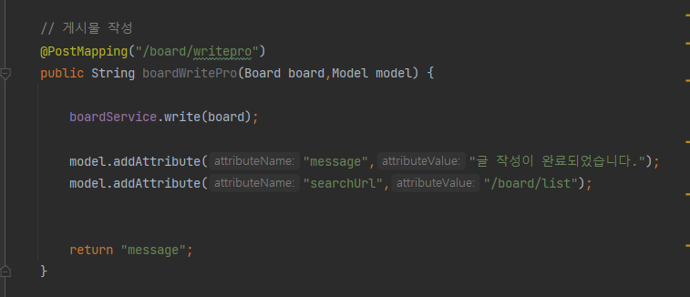 Controller에서 메시지를 message.html로 전송을 해준다.