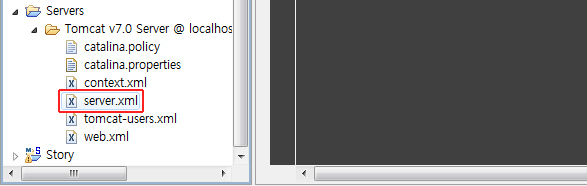 톰캣을 가동시키고 있다면 위 사진처럼 server.xml이 보인다.