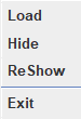 메뉴를 상단에 만들고 '보기' 라는 메인 메뉴 아래로 'Load', 'Hide', 'ReShow' 라는 서브 메뉴를 추가 했다.