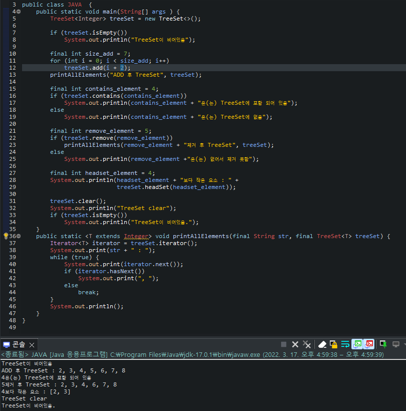 TreeSet을 사용하기 위해서는 TreeSet을 import 해줘야 한다.