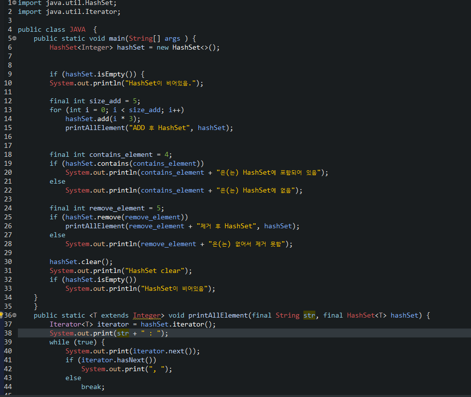 HashSet을 사용하기 위해서는 HastSet을 import 해줘야 한다.import java.util.HashSet;