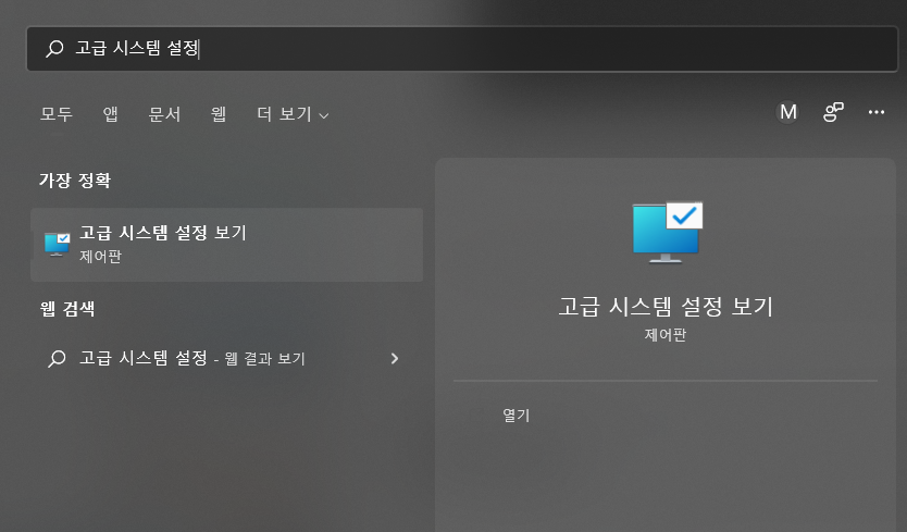 고급시스템설정으로 들어간 후에
