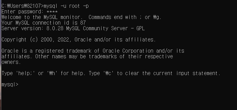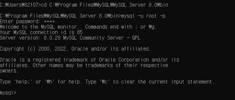 우선 cd로 MysSQL 경로를 지정 해줘야 한다.