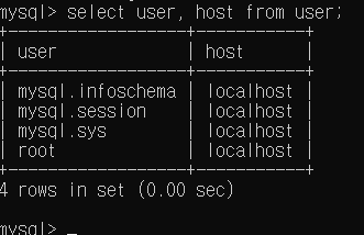 select from 문을 이용하여 그 결과 사용자의 목록을 조회할 수 있다.