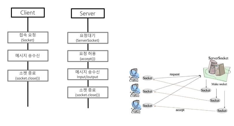 · 클라이언트의 TCP 요청이 오면 accept() 메서드를 통해 Socket 객체를 생성한 후 다른 클라이언트의